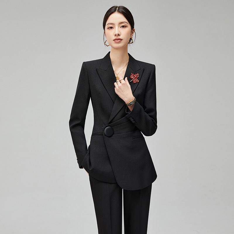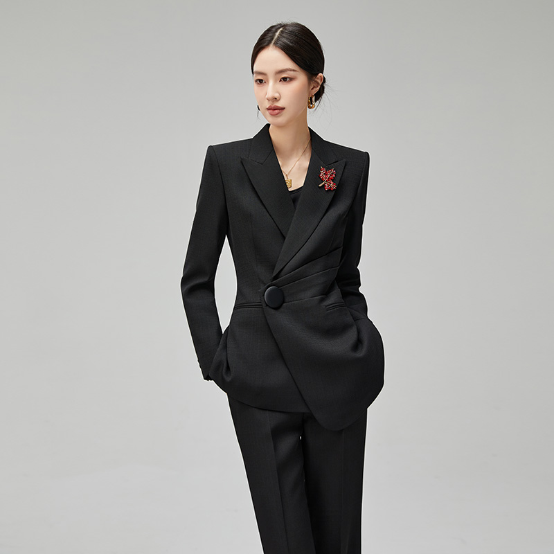男套装 正装 订婚穿搭礼服高定戗驳领垫肩西服 山茶花刺绣西装 新中式