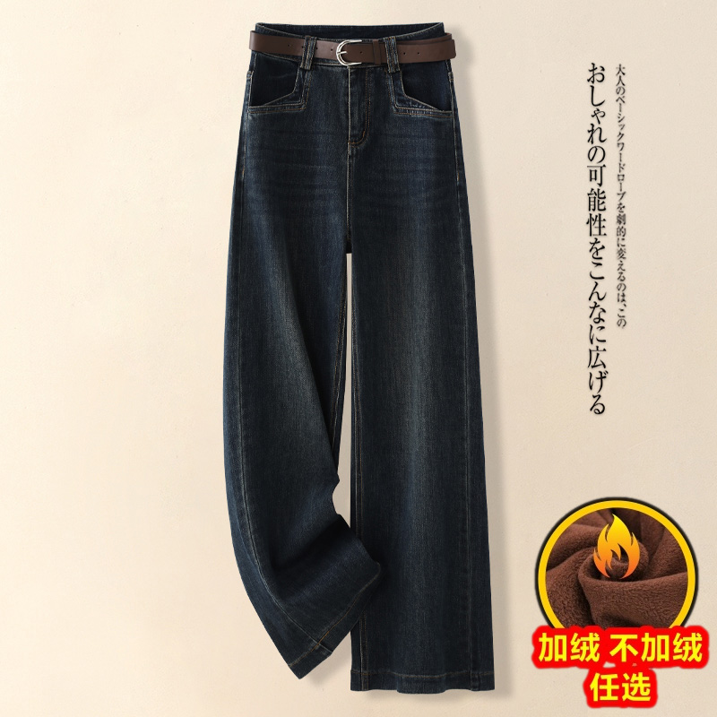 复古做旧阔腿显瘦直筒牛仔裤 新款 2025年秋季 热风女士直筒牛仔裤