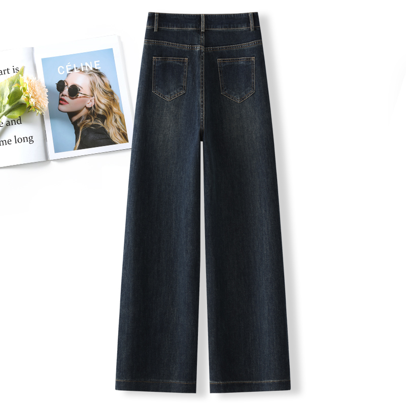 垂感拖地直筒裤 深蓝色阔腿牛仔裤 春秋天小个子窄版 2025新款 女秋季