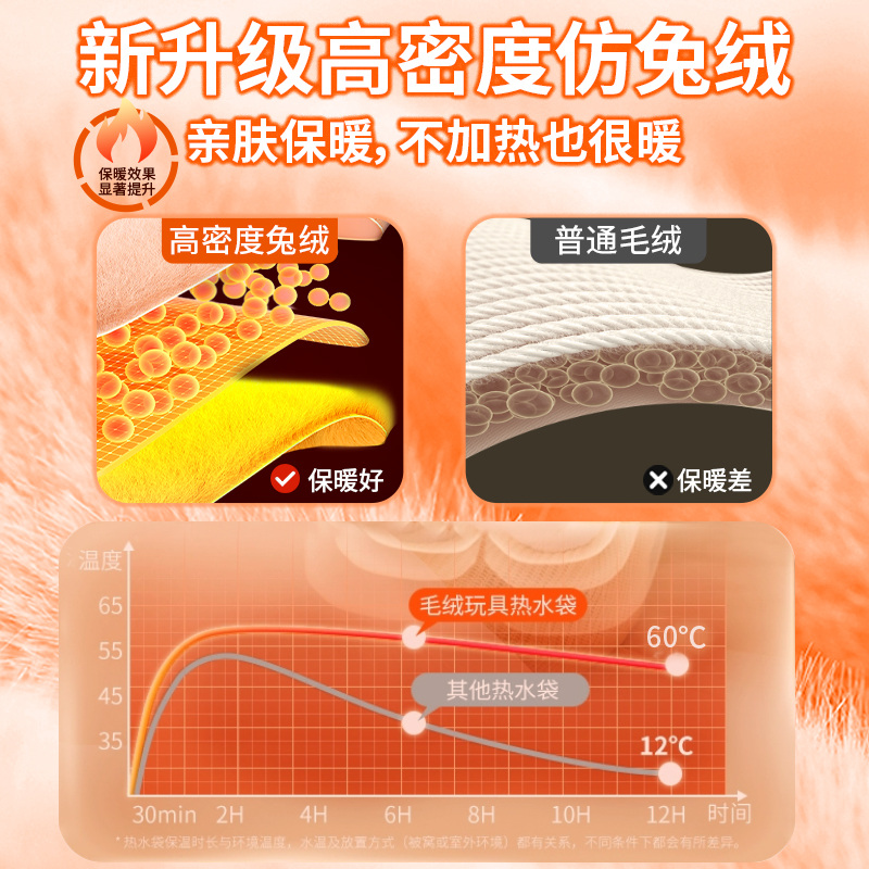 毛绒热水袋注水暖水袋灌水被窝专用热敷暖宝宝暖脚暖手宝2025新款