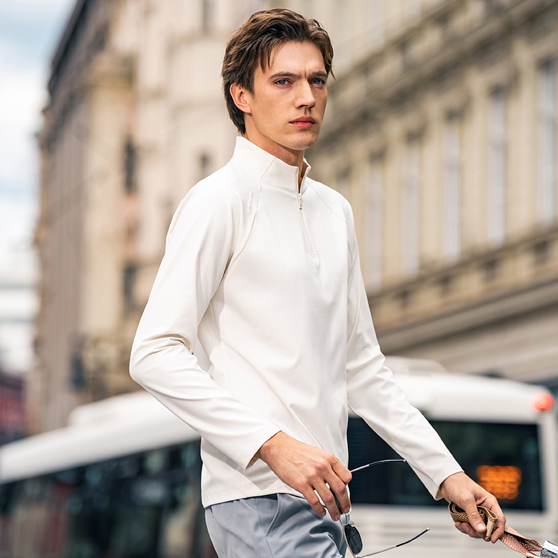 MrBu布先生插肩袖 t恤秋冬字母标运动风打底男PT15335 拉链立领长袖
