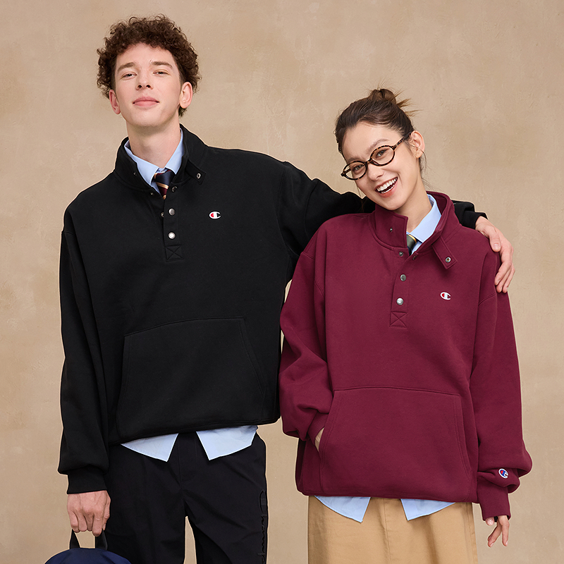 Champion冠军情侣加绒卫衣男2025冬季 按扣半高领保暖上衣女秋 新款