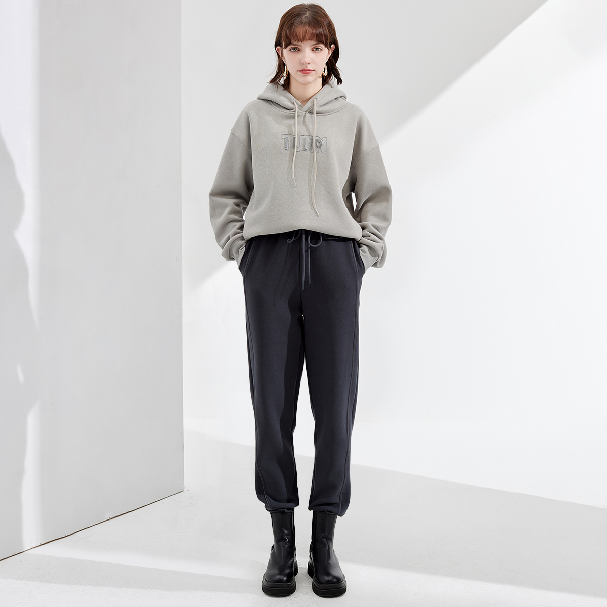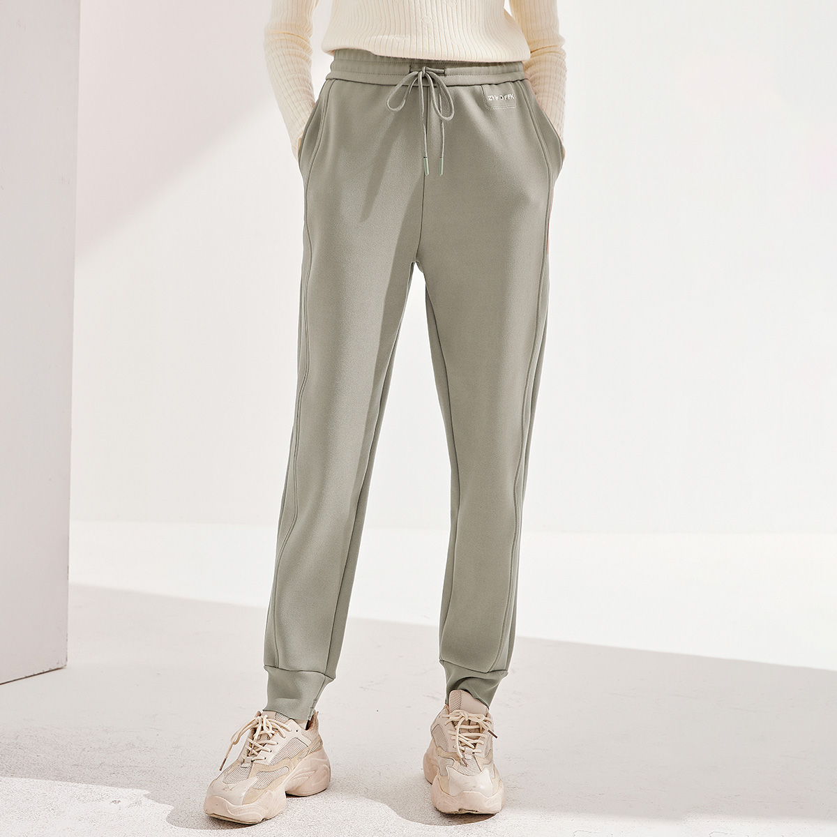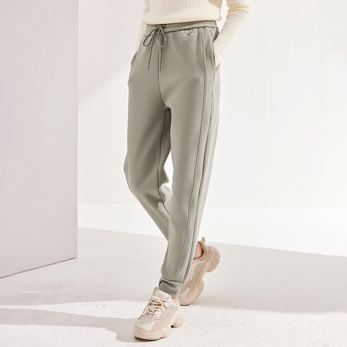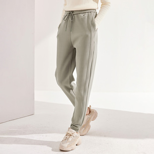 抽绳高腰休闲裤 运动磨毛加厚束脚裤 纳纹2025秋冬款 女 加绒