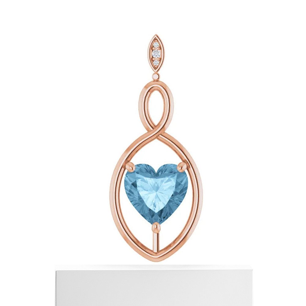 毫米蓝色托帕石女士心形吊坠 毫米高 14k 金项链 pompeii39