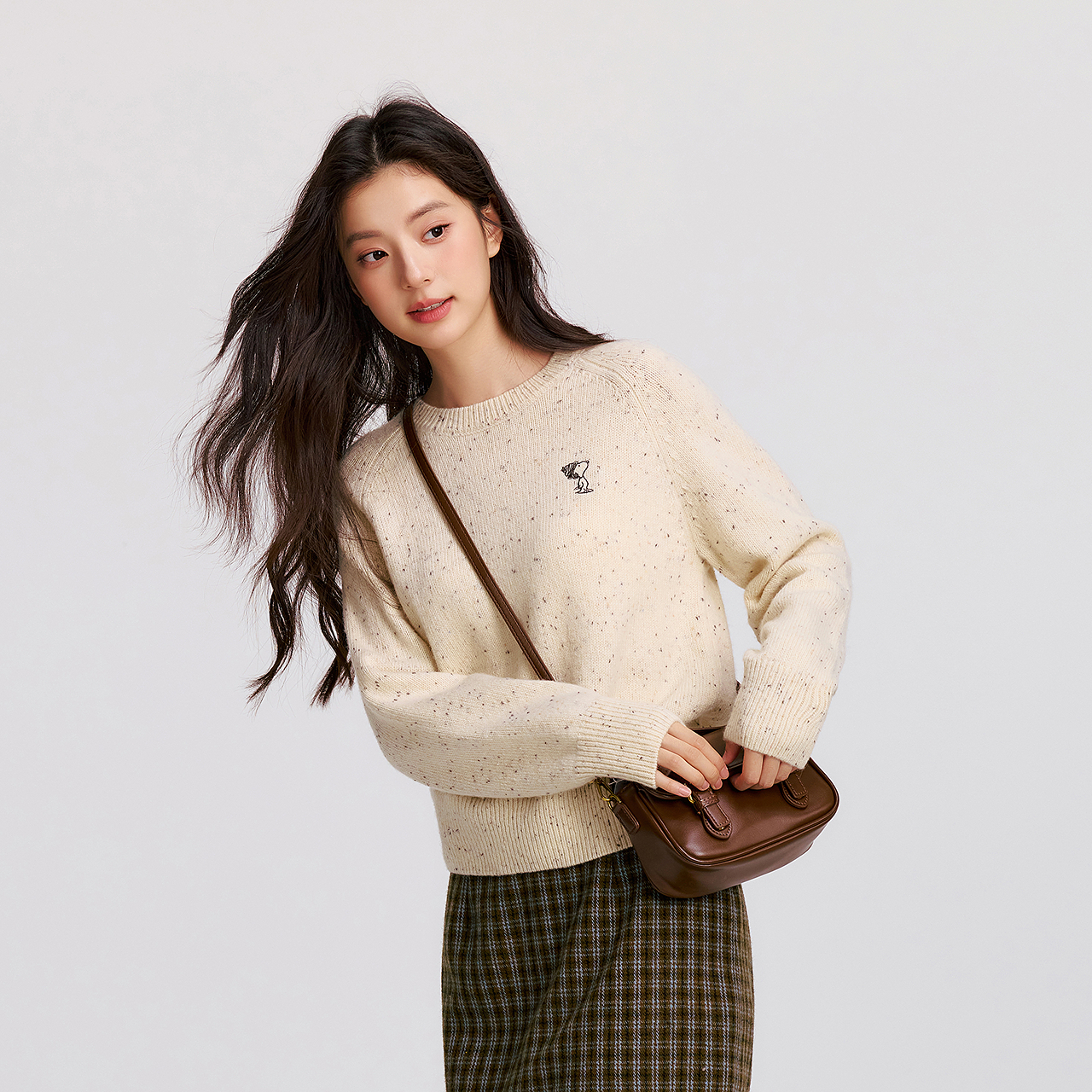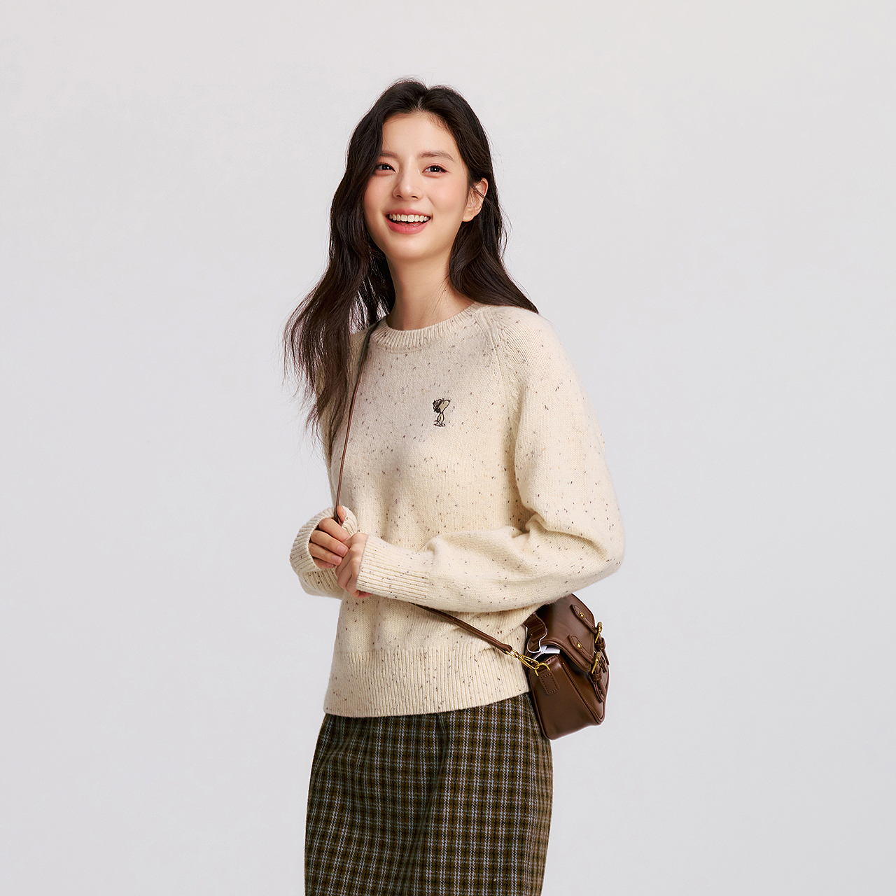 温柔毛衫 森马史努比系列毛衣女冬彩点含羊毛插肩袖 绣花圆领套头衫