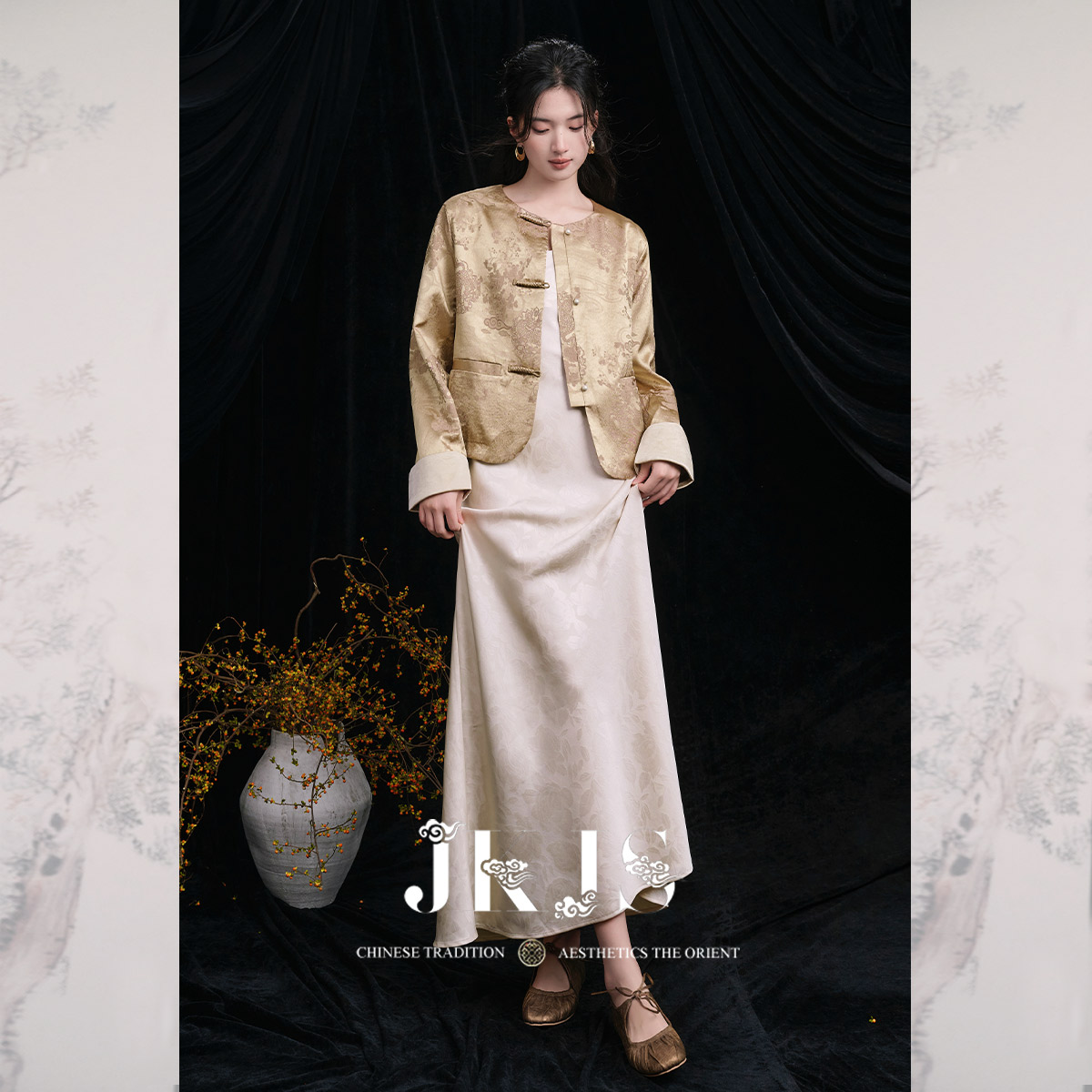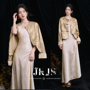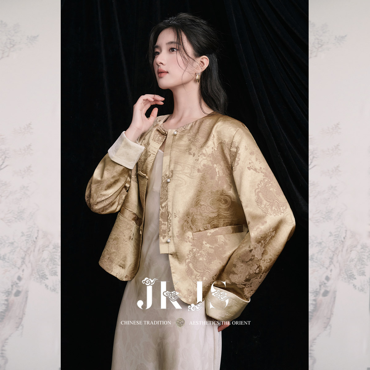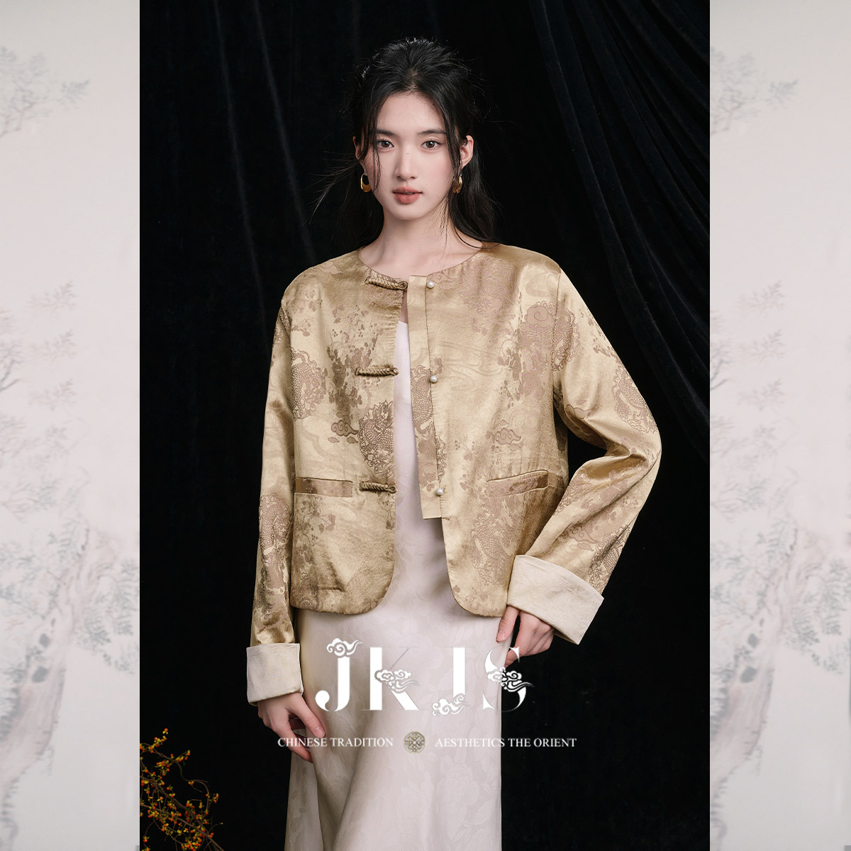 女装 JKJS人丝提花外套女春秋复古盘扣上衣2025新款 高级感新中式