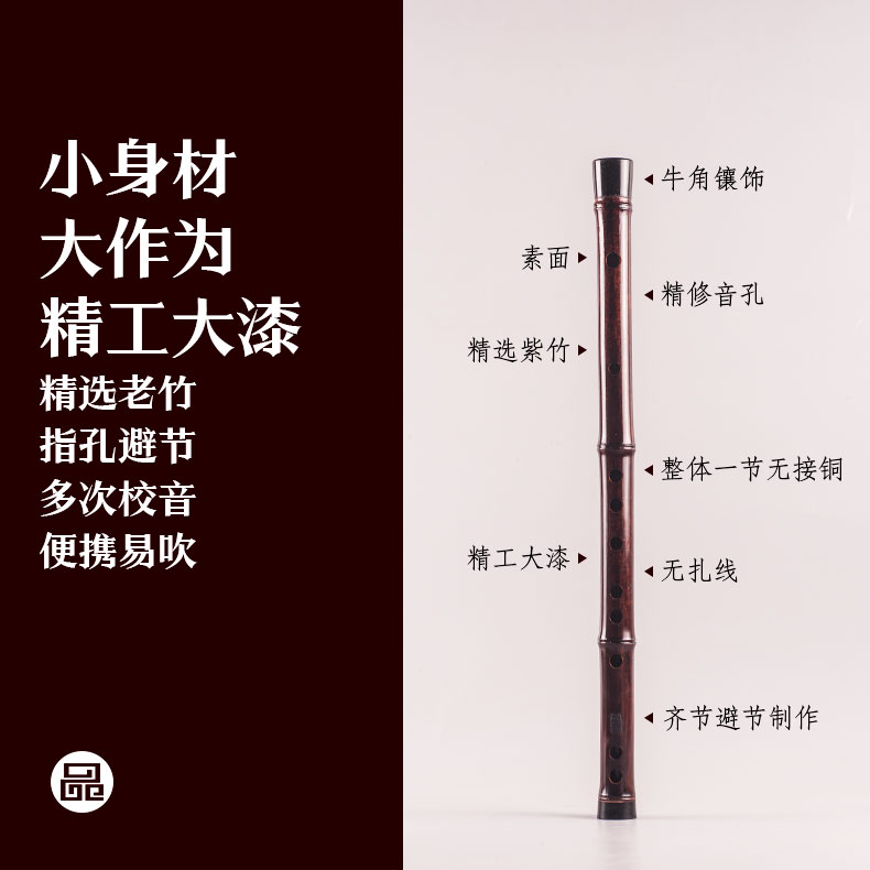 品致手工精制大漆短笛紫竹笛子便携袖 珍专业演奏考级初学迷你横笛