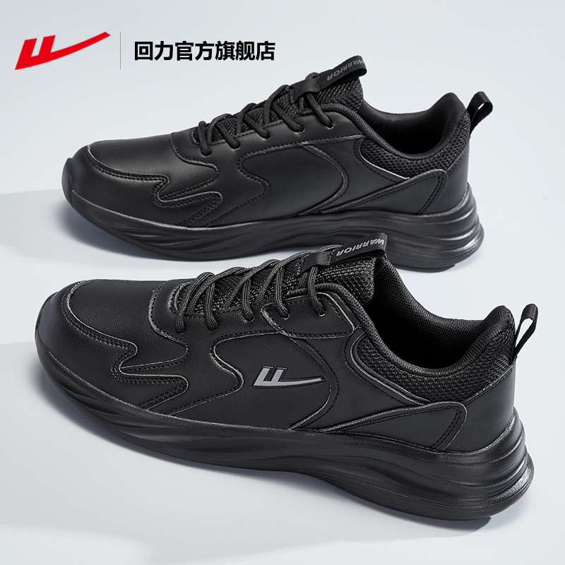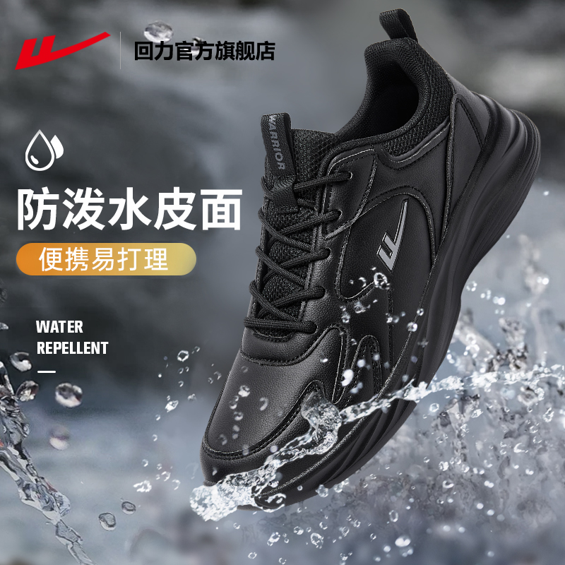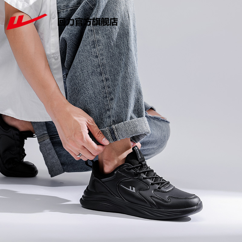 男鞋 跑步鞋 2025春季 皮面防水黑色男士 男 新款 回力官方旗舰店运动鞋