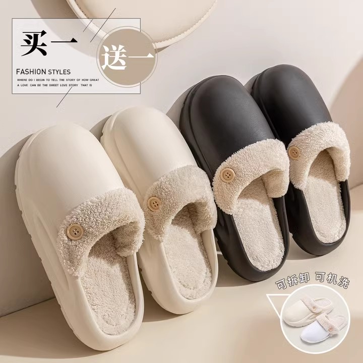 情侣家居室内防水毛拖男冬士 2025新款 买1送1可拆卸棉拖鞋 女秋冬季