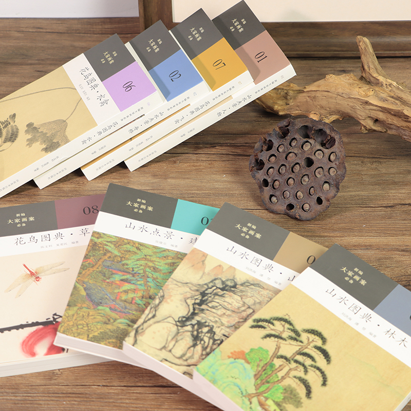 新编大家画案必备全集8册 山石树木人物舟桥建筑山水画草虫飞禽水禽花鸟画传统中国画古代名画高清临摹鉴赏画册画谱绘画作品集