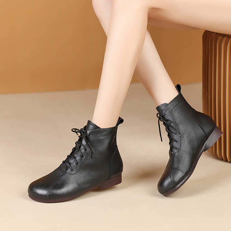 美拉德棕色靴子厚底黑色短靴 秋复古女鞋 英伦风马丁靴女款 2025新款