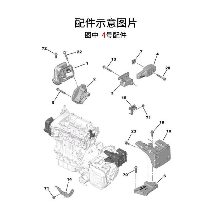 适配标致301雪铁龙C3XR新爱丽舍2008发动机支架A型支架胶下机脚垫