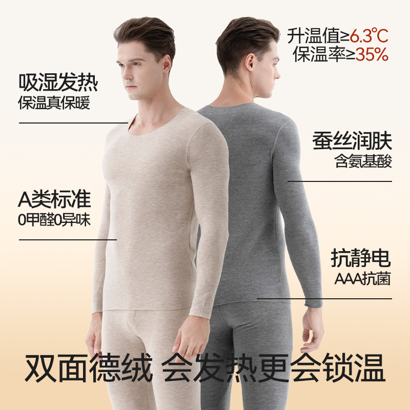 冬上衣 加厚加无痕发热蚕丝打底棉毛衫 德绒保暖内衣男秋衣秋裤 套装