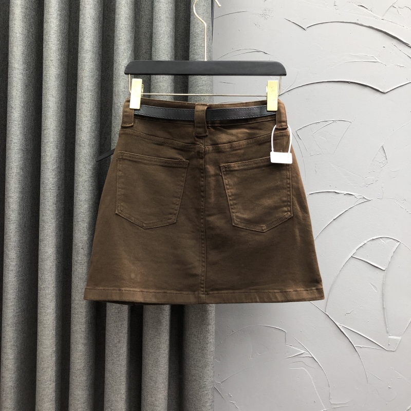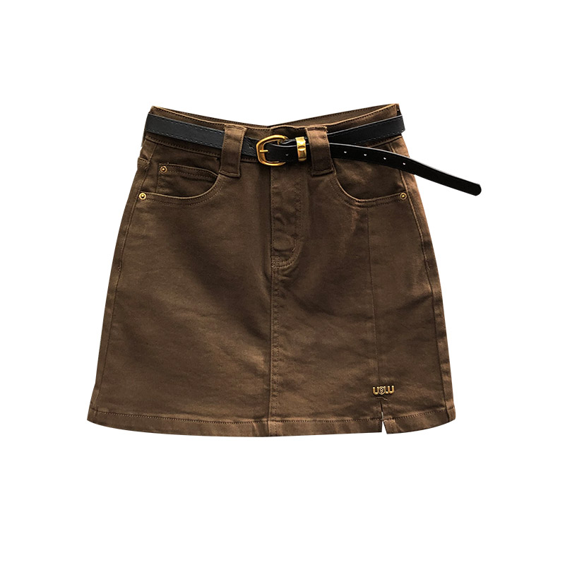 咖啡色高腰显瘦牛仔短裙女春夏时尚 洋气百搭A字开叉打底半身裙子