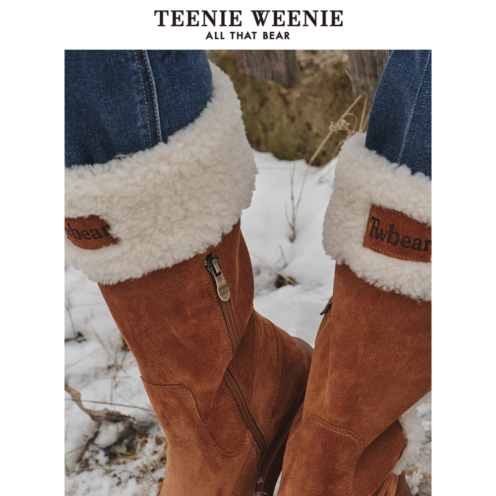 舒适保暖女鞋 TeenieWeenie小熊撞色靴子冬季 潮流设计时尚