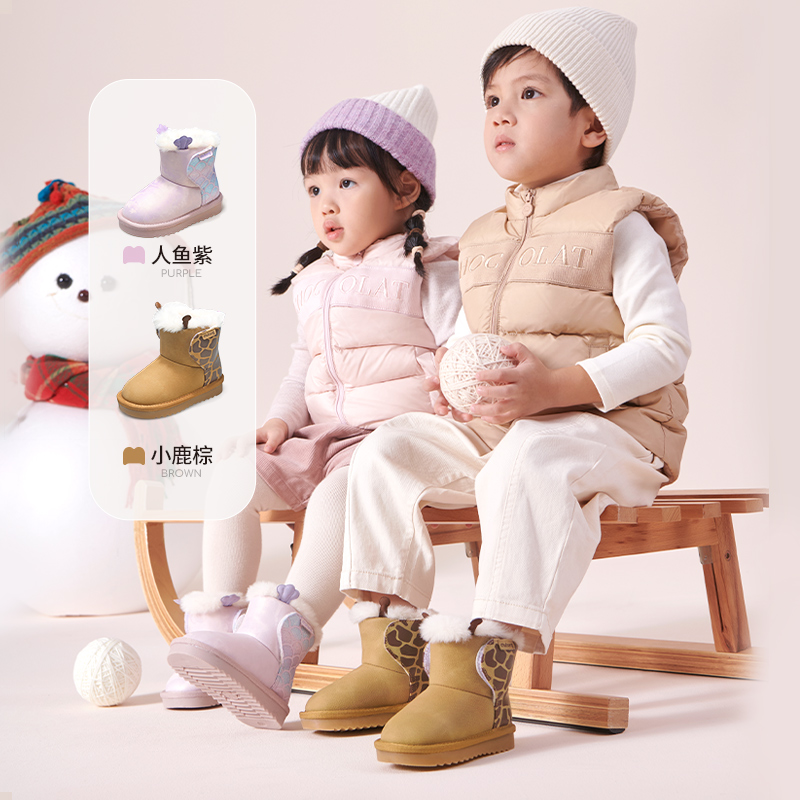 KRX02DH5 子加绒保暖鞋 TATA他她黄油小熊雪地靴冬棉鞋 防滑厚底鞋