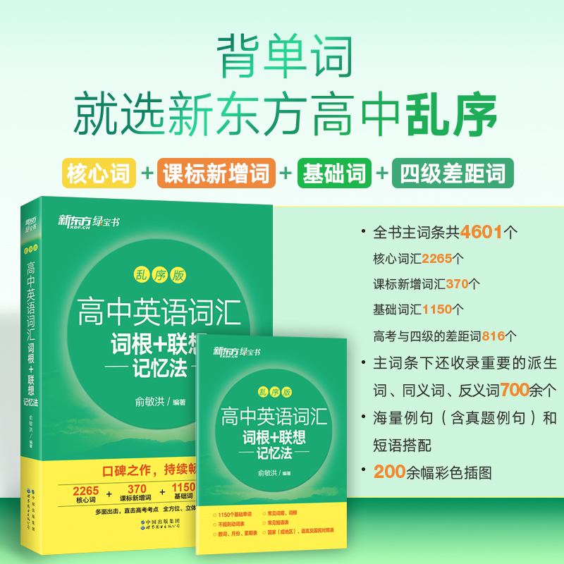新东方高中英语词汇词根 高中必背单词全国通用备考高考单词书新高考大纲高频核心单词高中绿宝书 联想记忆法乱序版