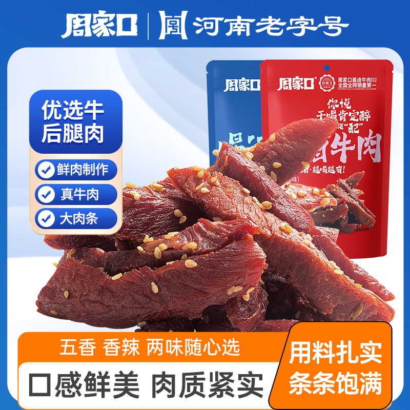 周家口香辣牛肉条风干牛肉干卤味熟食真空方便即零食手撕特产旗舰