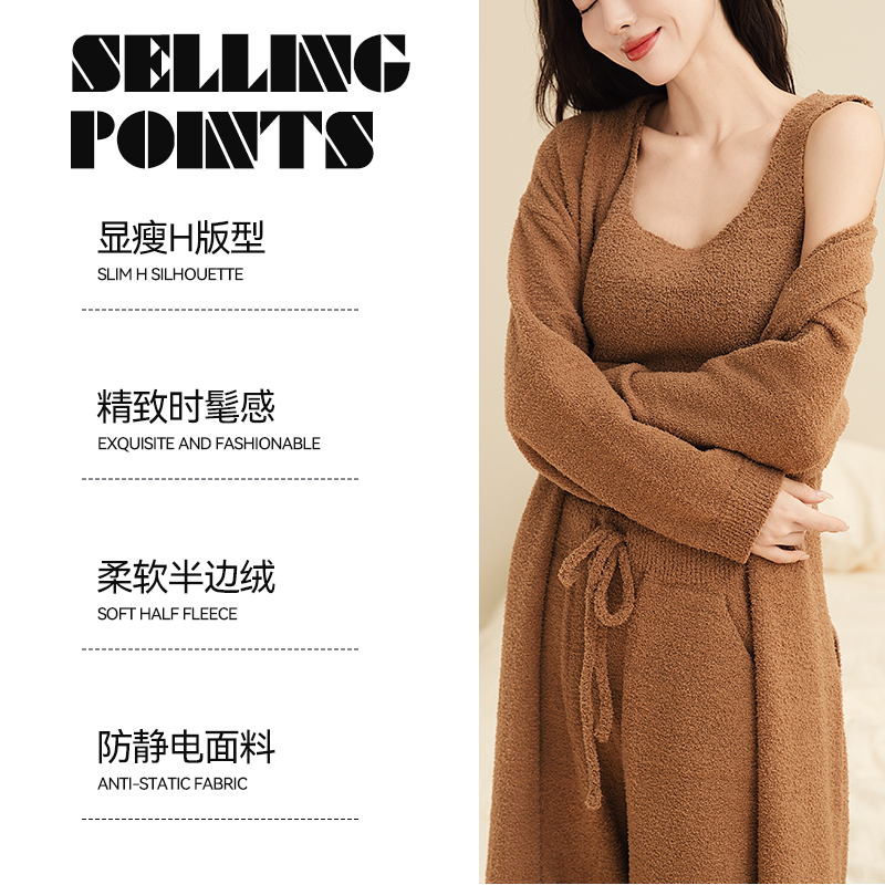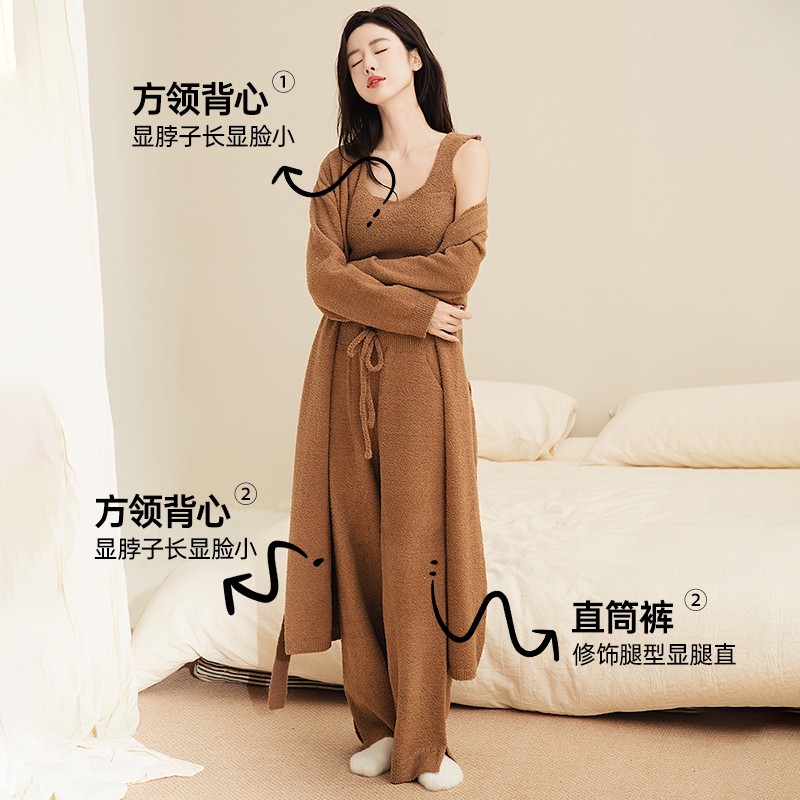 背心三件套珊瑚绒家居服套装 猫人睡衣女士2025秋冬新款 半边绒长袖