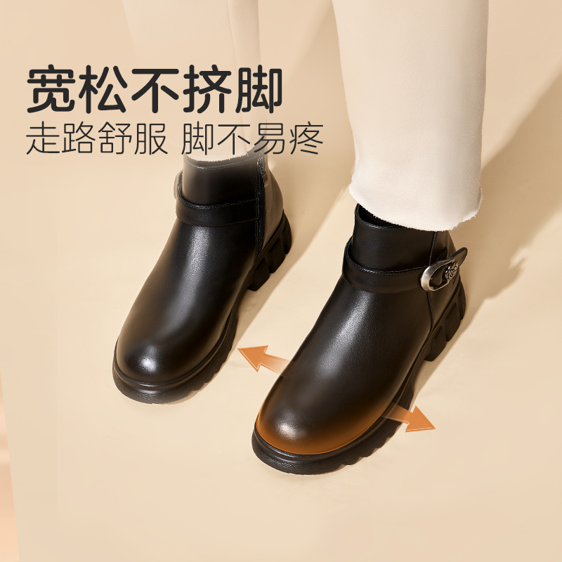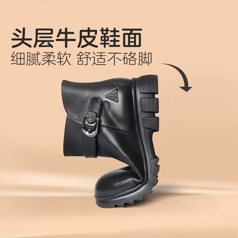 女真皮软不累脚牛皮妈妈鞋 休闲黑色皮鞋 软底舒适 秋季 足力健老人鞋