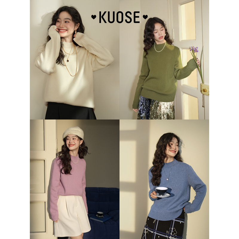 高级感上衣宽松打底针织衫 圆领100%纯山羊绒衫 女高端毛衣秋冬新款