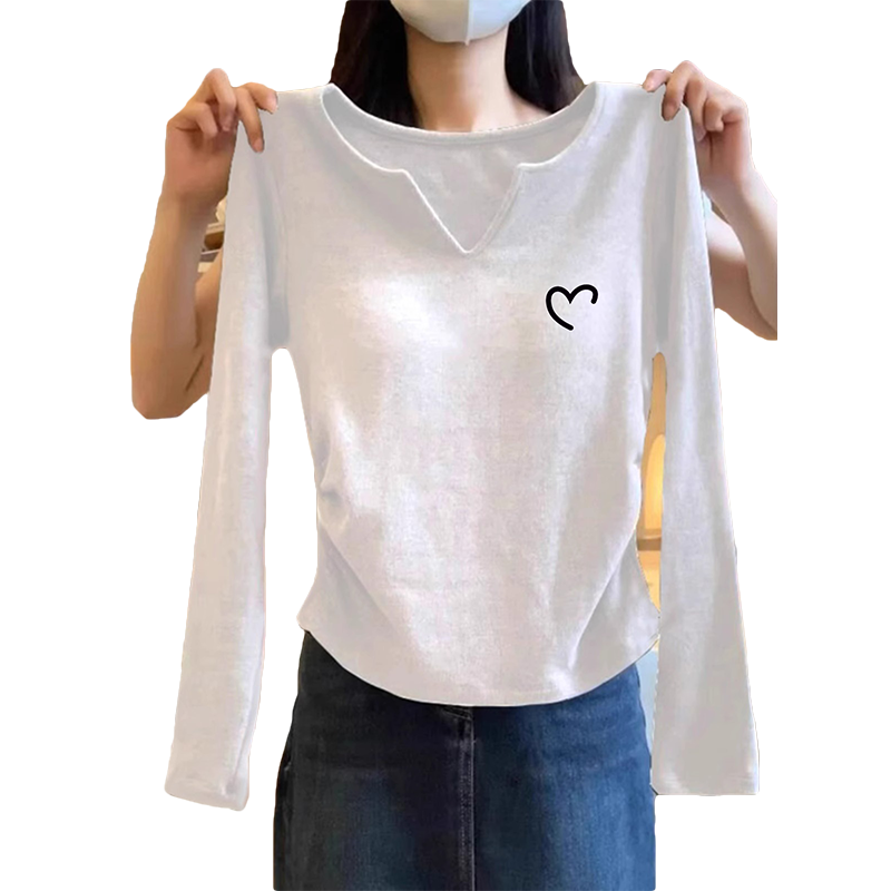 辣妹短款 白色V领纯棉长袖 加绒内搭打底衫 秋冬季 上衣 t恤女2025新款