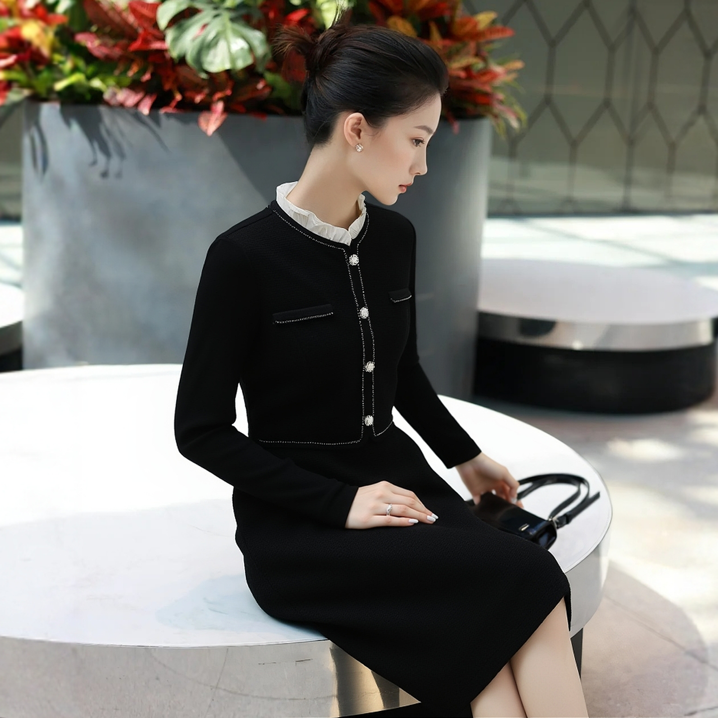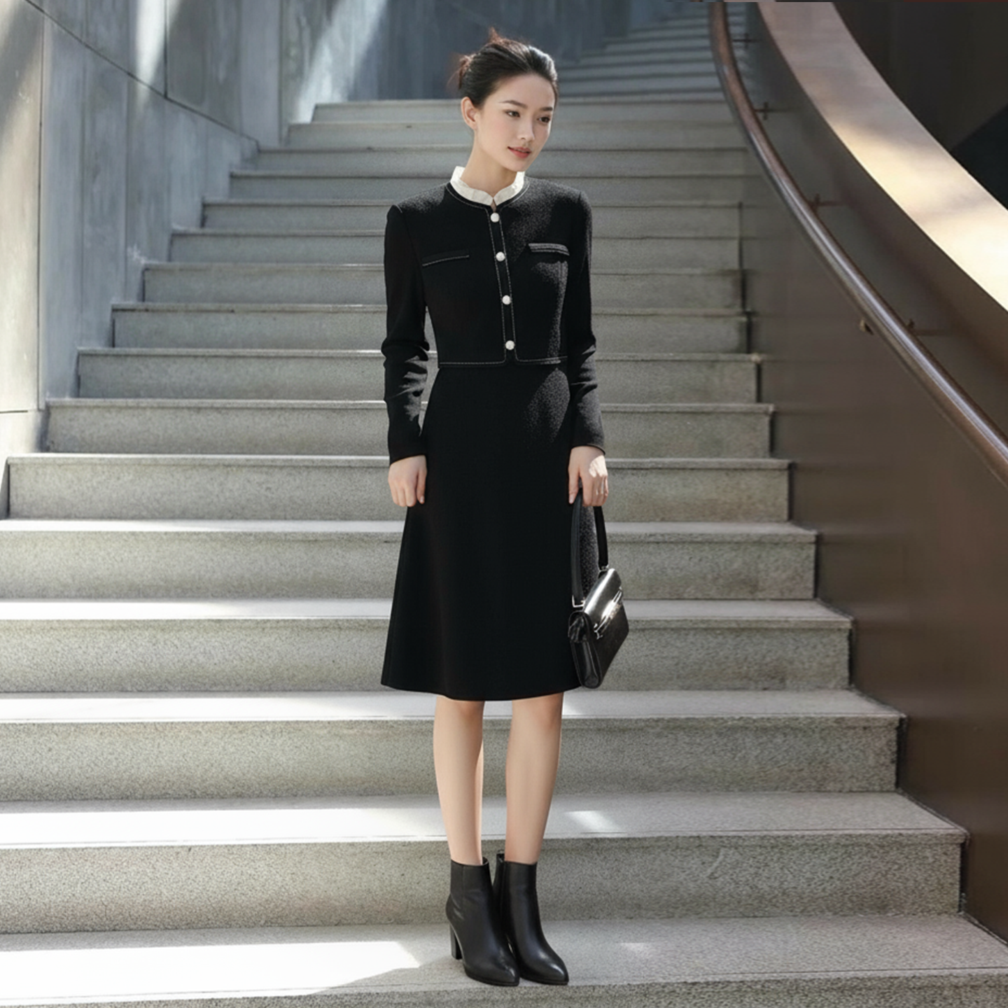 赢智尚小香风通勤连衣裙秋季 羊毛混纺收腰显瘦气质假两件裙子 新款