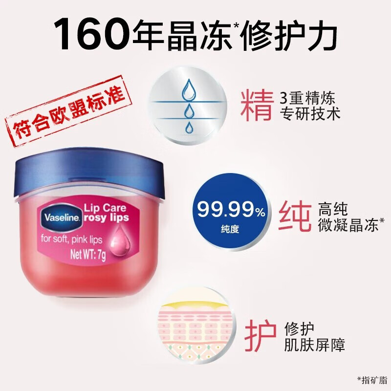 Vaseline凡士林经典 缓解唇部干裂 润唇膏白桃玫瑰味7g滋润唇膜保湿