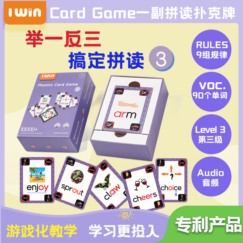 音配对游戏CVC带美音教学视频 Win英语自然拼读扑克牌桌游长短元
