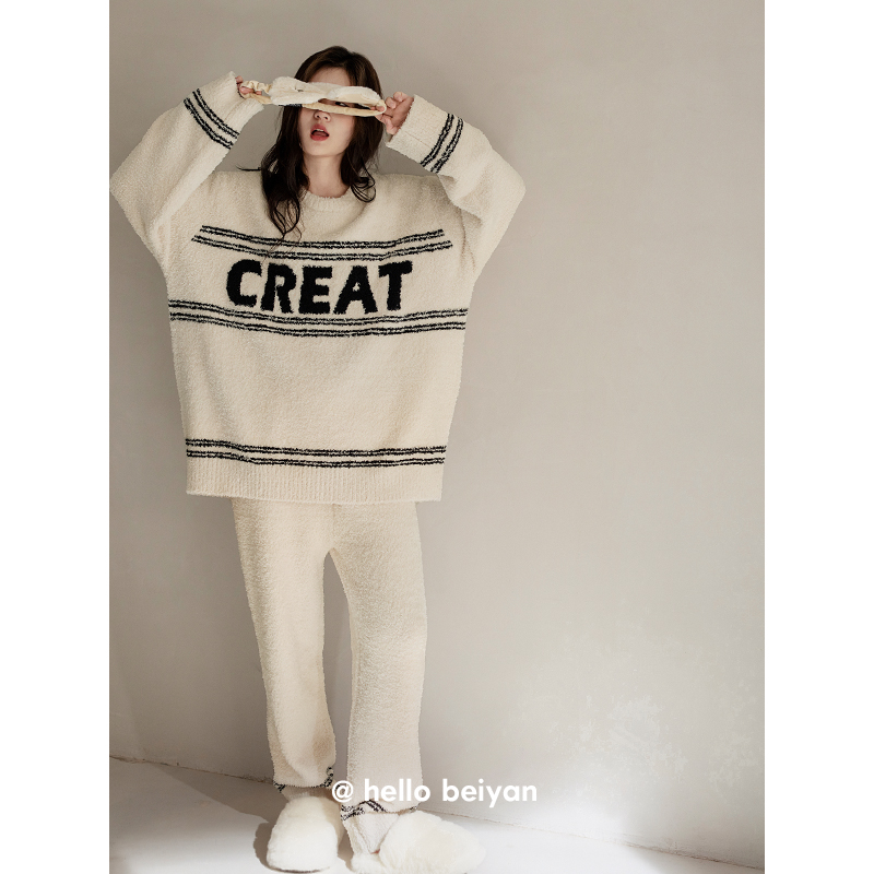 半边绒套装 贝妍新款 睡衣女秋冬圆领套头保暖珊瑚绒家居服宽松大码