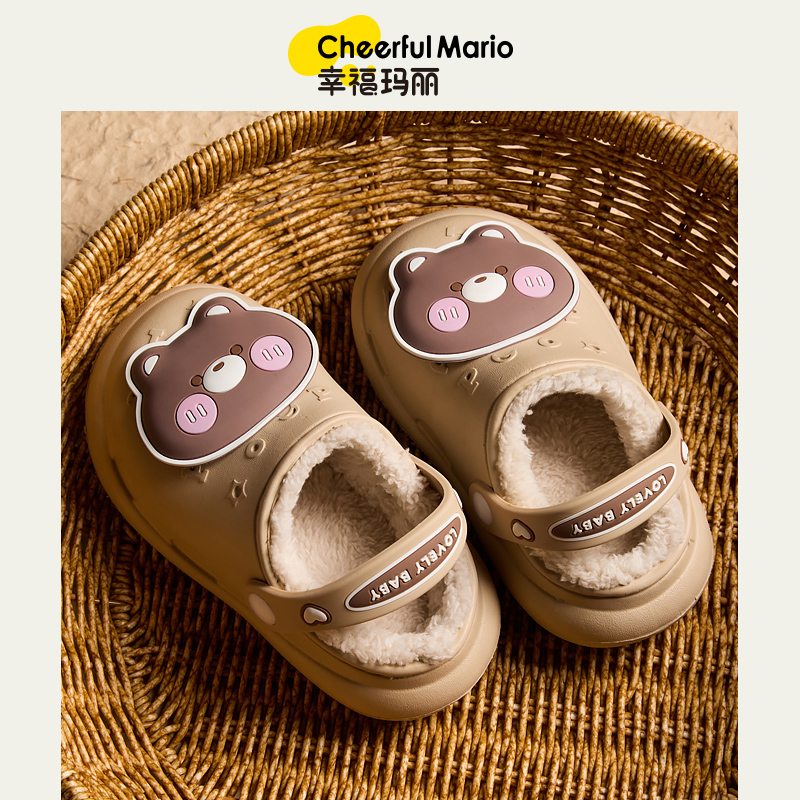 女孩 小童室内家居男童秋冬婴幼儿防水儿童棉拖鞋 小熊宝宝拖鞋 冬季