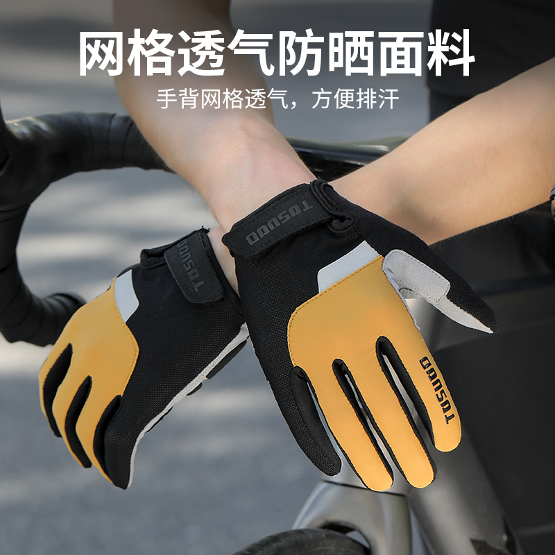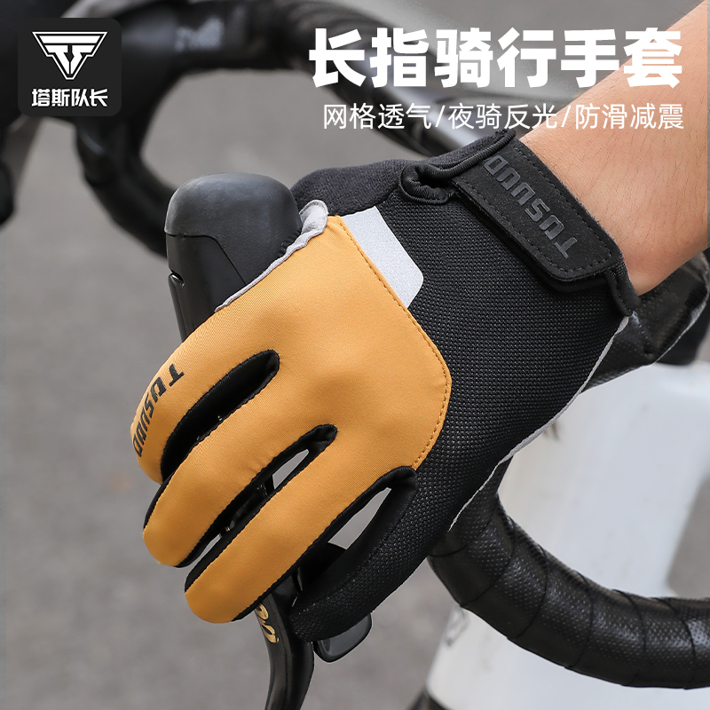 塔斯队长骑行手套长指山地自行车手套男女春秋防滑减震透气装 备