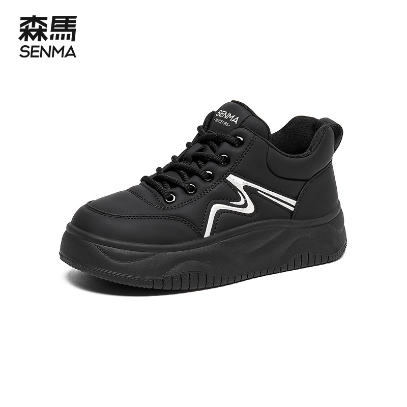 百搭学生厚底增高运动休闲鞋 森马黑色高帮板鞋 韩版 爆款 女2025新款