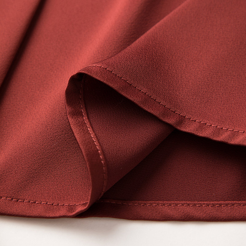 红色气质衬衫 新款 女上衣 V领雪纺衬衣2025秋季 千寻宜法式