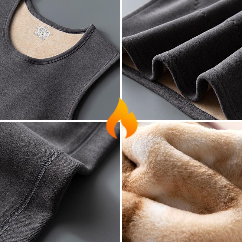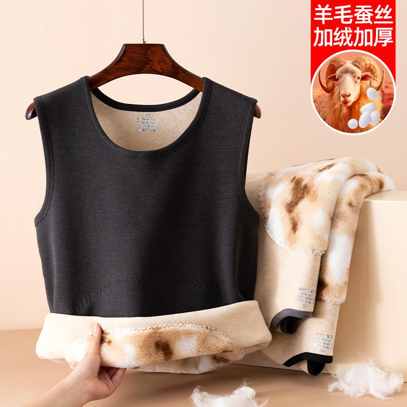 一体绒内穿马甲 上衣秋冬季 背心男士 加绒加厚发热德绒保暖内衣男款
