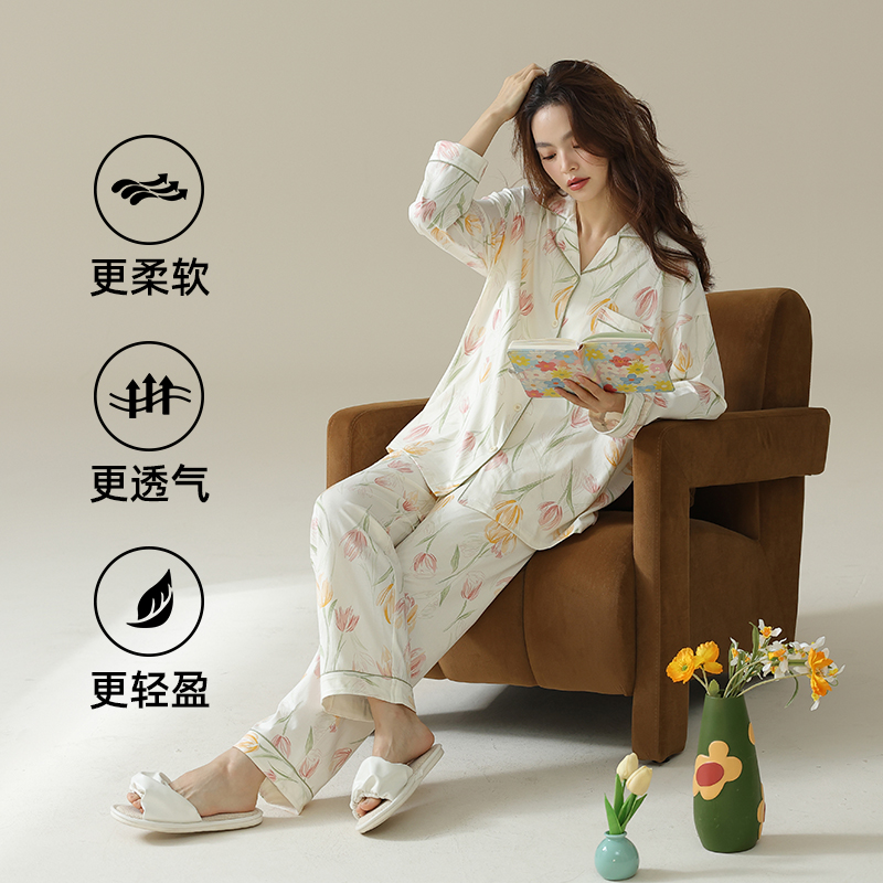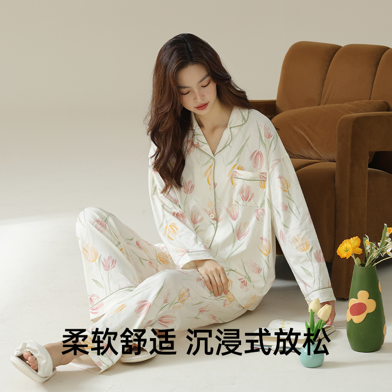 宽松家居服两件套装 安之伴纯棉睡衣情侣长袖 胡可推荐