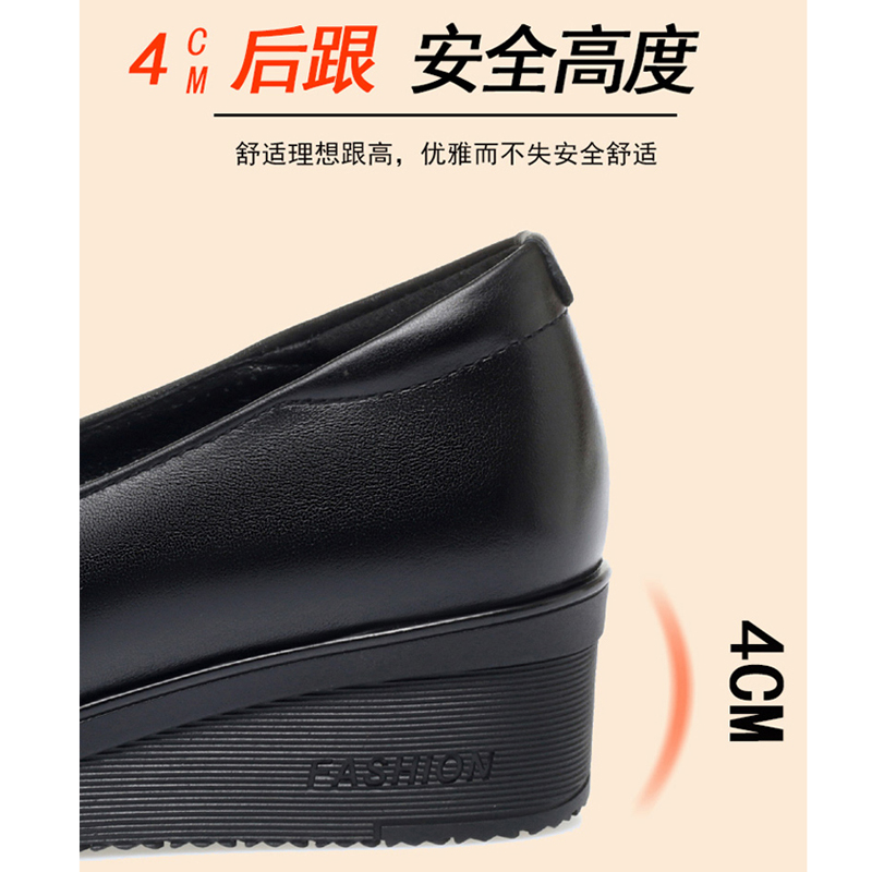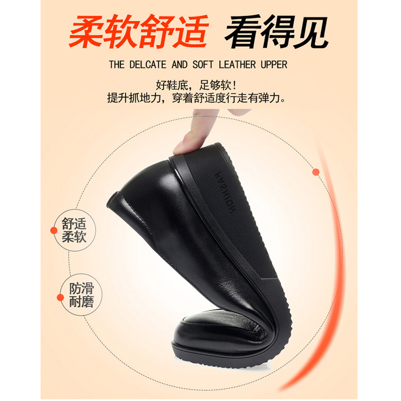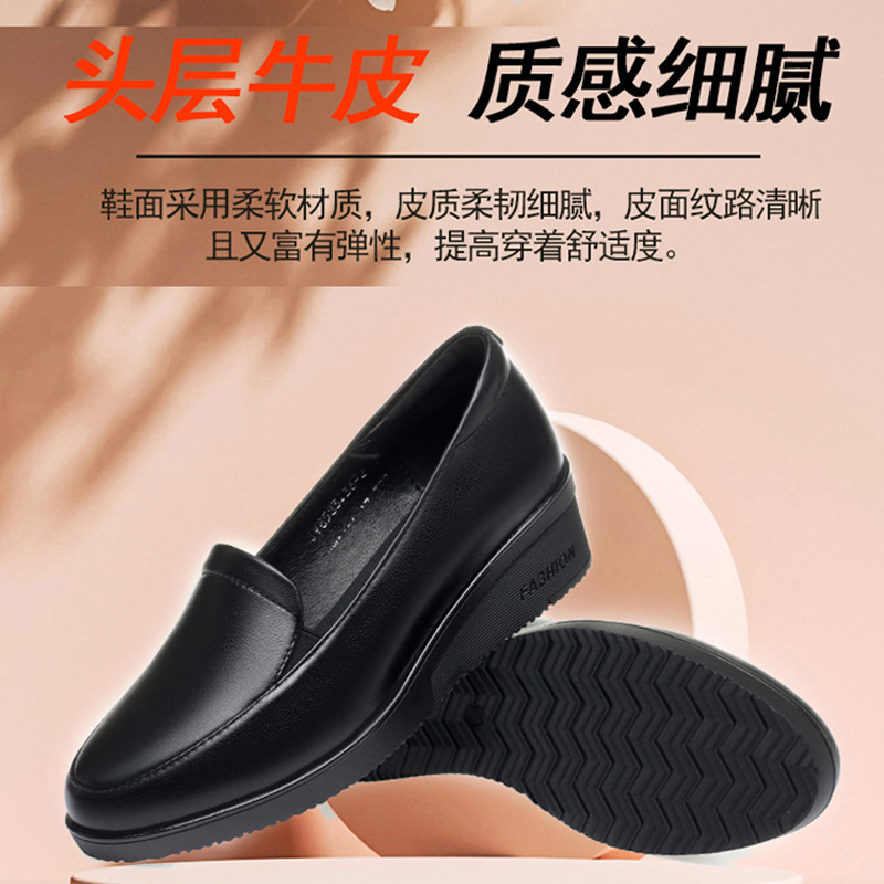 工作鞋 真皮女鞋 女士软底软皮防滑鞋 坡跟单鞋 子黑色皮鞋 中年妈妈鞋