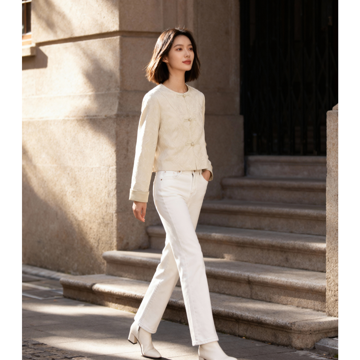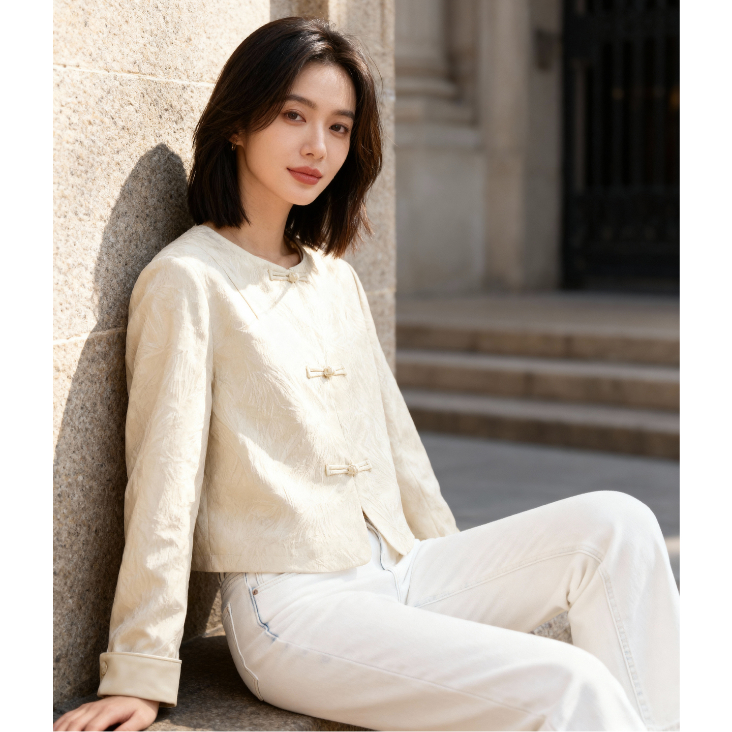 House 短款 百家好新中式 轻国风刺绣长袖 上衣 盘扣外套女秋季 Basic