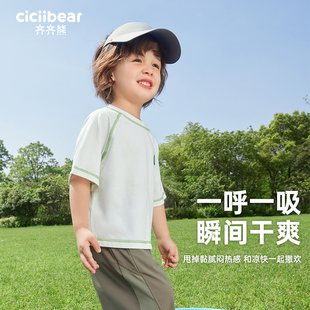 宝宝半袖 t恤夏季 齐齐熊男童短袖 儿童亲子装 运动速干衣凉感慢跑T