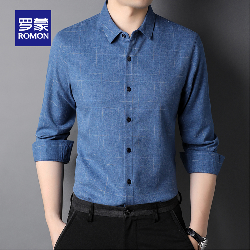 罗蒙男士 长袖 衬衫 工装 竹纤维免烫 秋季 易打理商务衬衣 直降