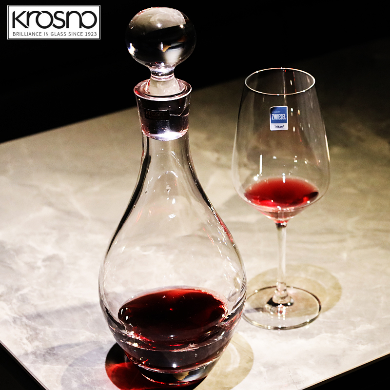 Krosno进口水晶玻璃高级感轻奢带盖子倒分酒器壶瓶红葡萄酒醒酒器