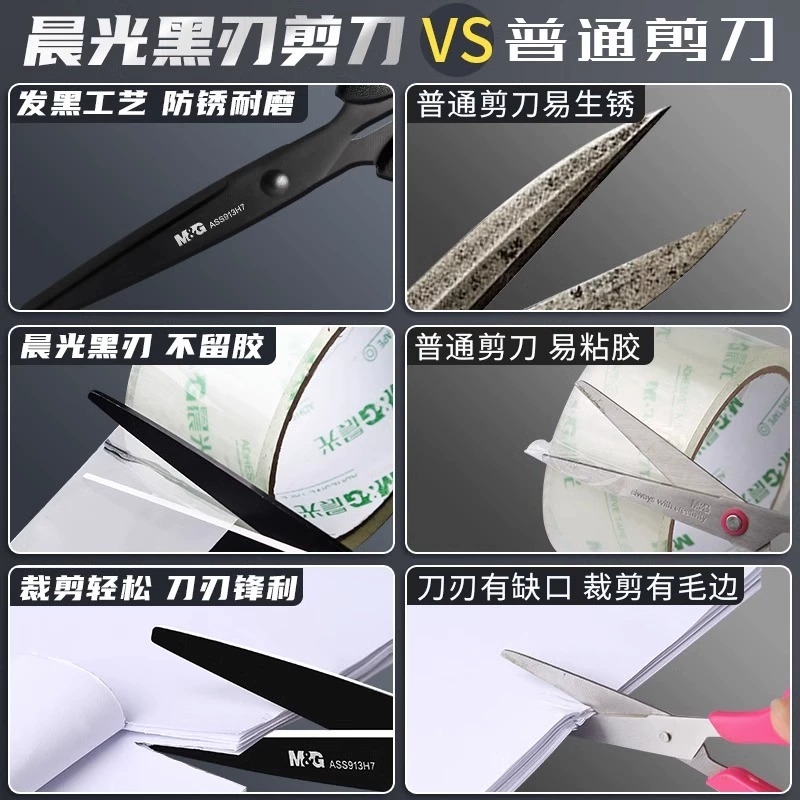 晨光黑刃办公剪刀家用儿童高颜值锋利不粘胶不锈钢剪纸美工大号学生专用手工剪子加长多功能小号红色防锈裁剪