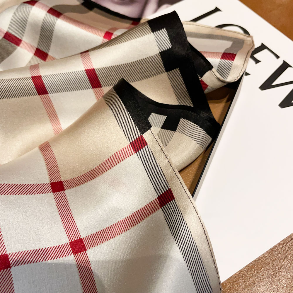 格子真丝围巾小领巾100%桑蚕丝丝巾方巾配西装 杭州丝绸春秋季 经典