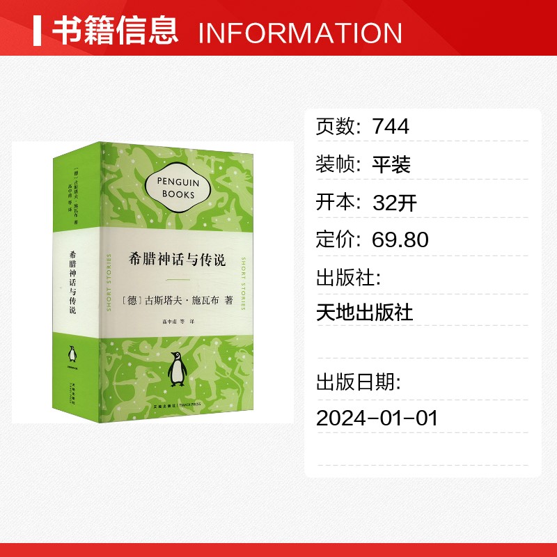图书籍 社 著 译 世界名著文学 等 古斯塔夫·施瓦布 高中甫 天地出版 希腊神话与传说 新华书店正版 德