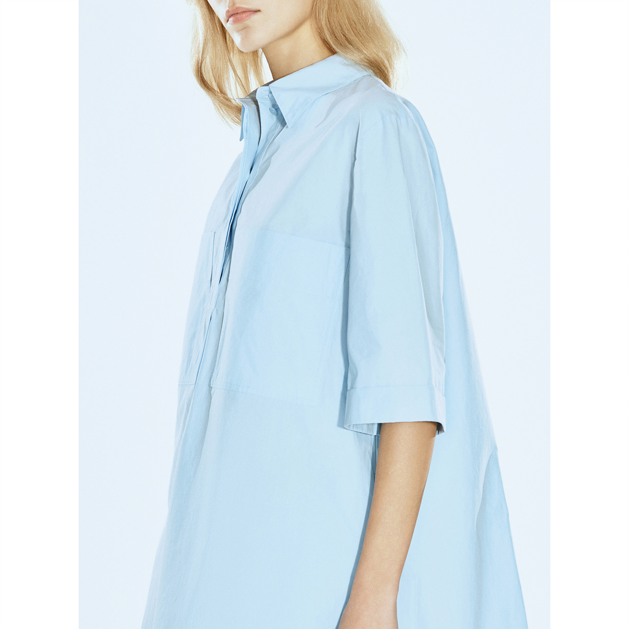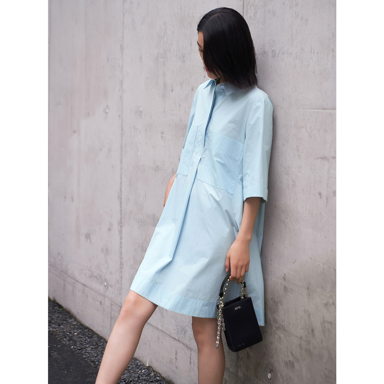 礼服裙子长袖 DPLAY2025年秋季 气质缎面衬衫 白色连衣裙女法式 新款