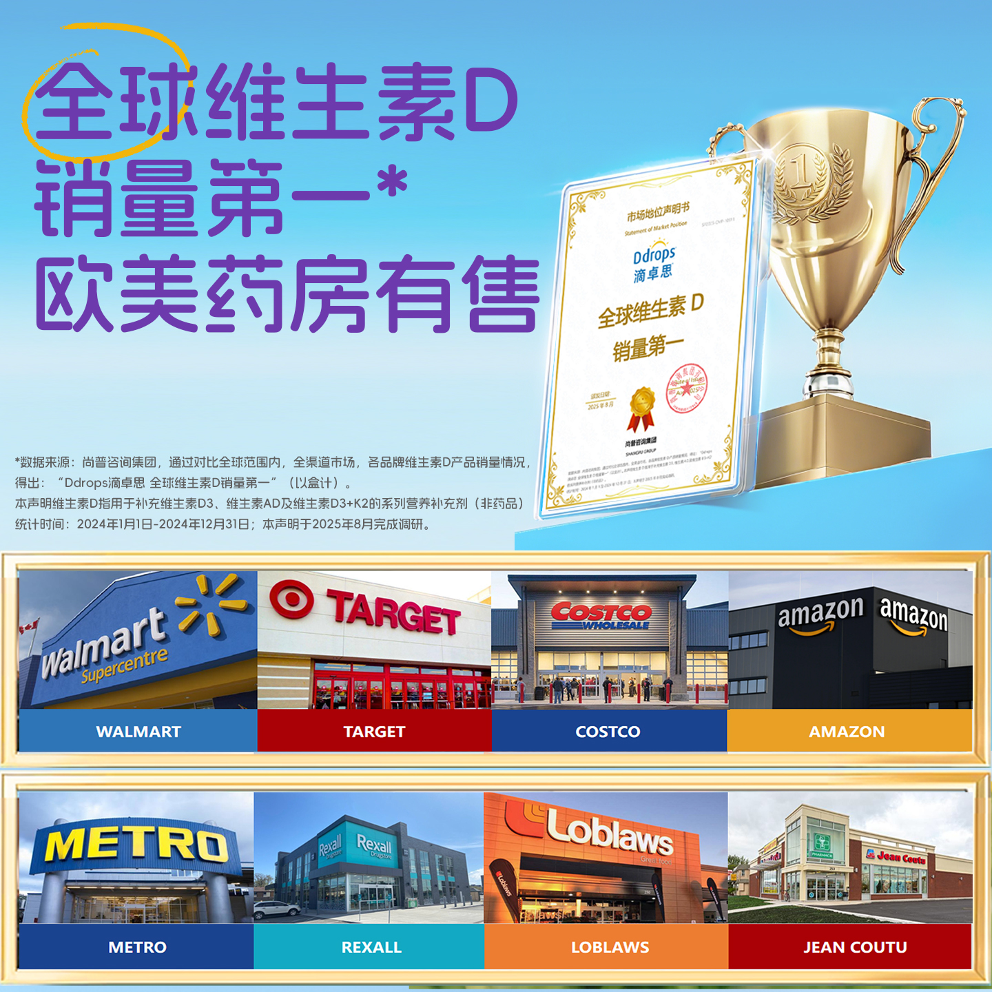 Ddrops滴卓思儿童维生素D3滴剂VD3一岁以上宝宝补钙维D婴幼儿d3