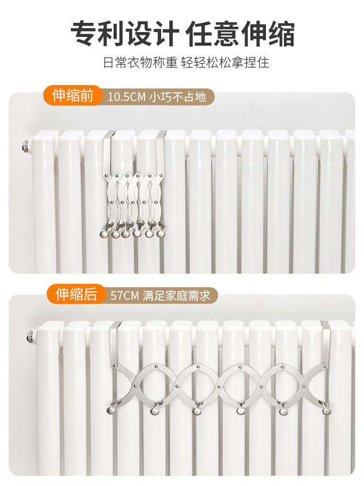 暖气片上方烘衣置物架晾鞋 挂钩可伸缩晾衣架不锈钢家用暖气管支架