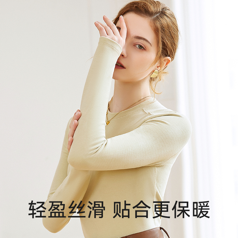 加绒厚莫代尔棉毛衫 上衣冬季 秋衣 打底衫 德绒自发热保暖内衣女修身