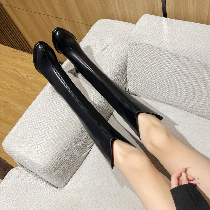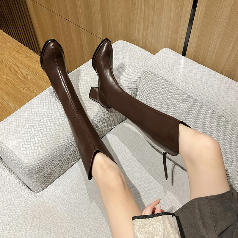 尖头百搭高跟长筒靴女加绒2025秋冬新款 真皮瘦瘦高筒靴 高级感爆款