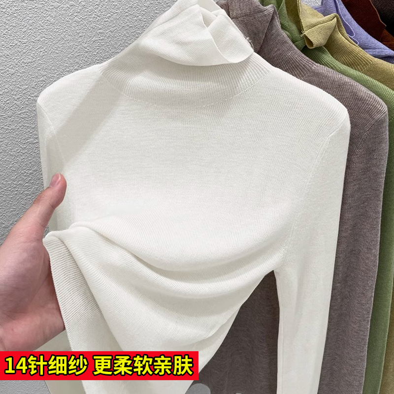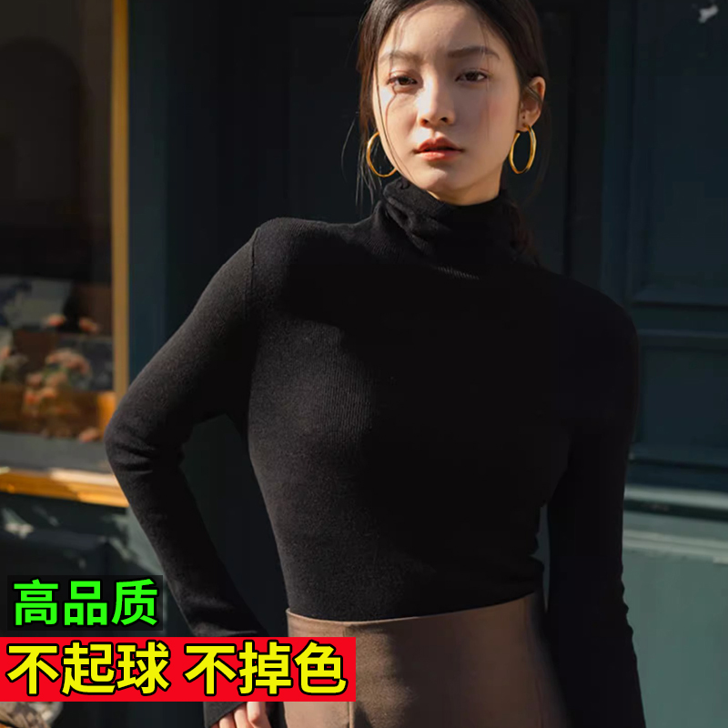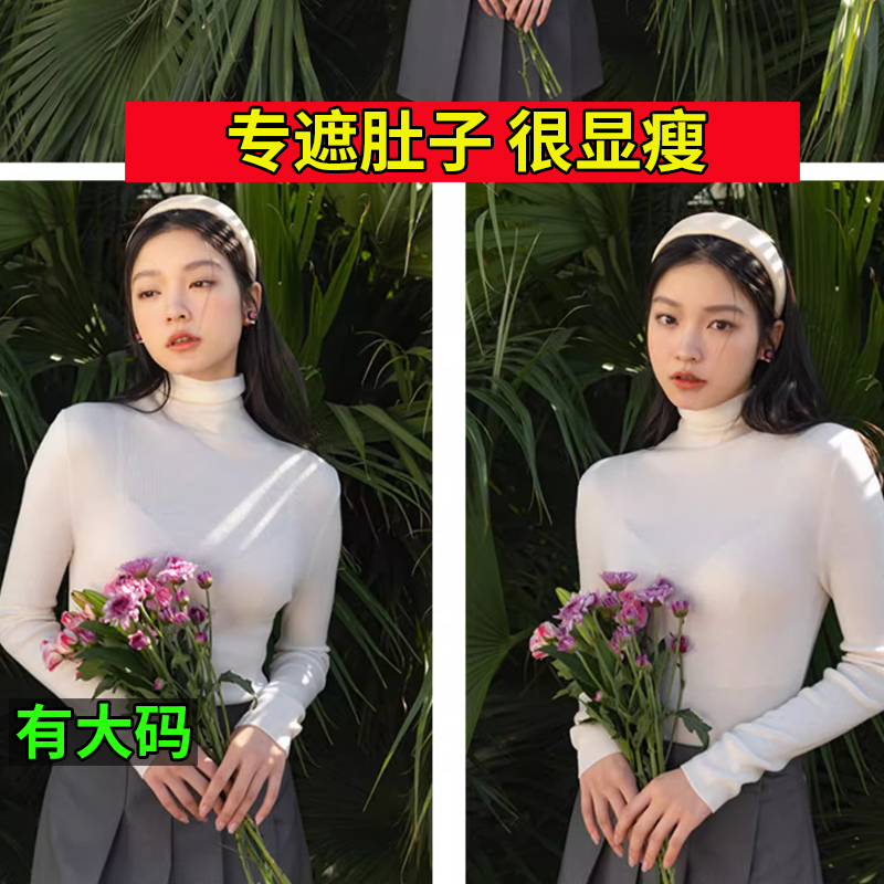 胖mm高领堆堆领针织衫 薄款 打底衫 秋冬修身 毛衣上衣 女2025新款 大码
